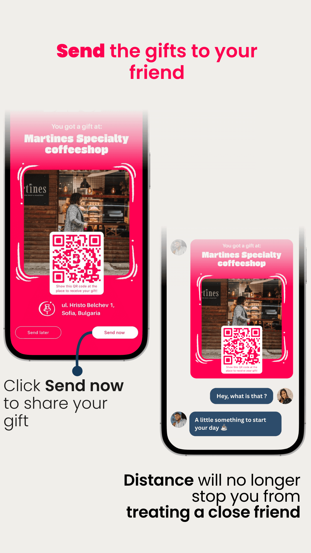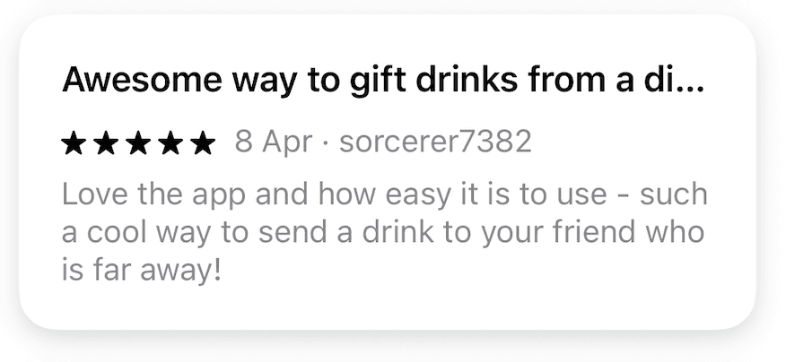 Create an account. Pick a city. Select a venue. Choose a beverage or a snack. Gift it.