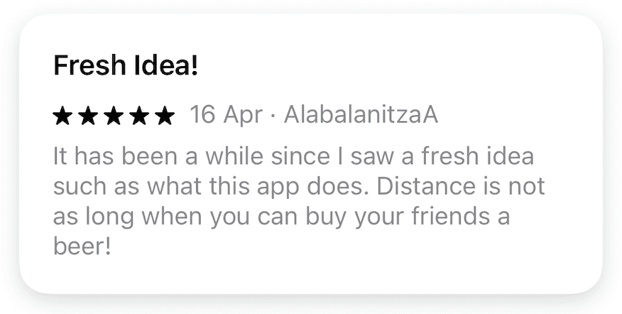 The app is completely free to download from App Store and Google Play. We live by a small commission from each gift.