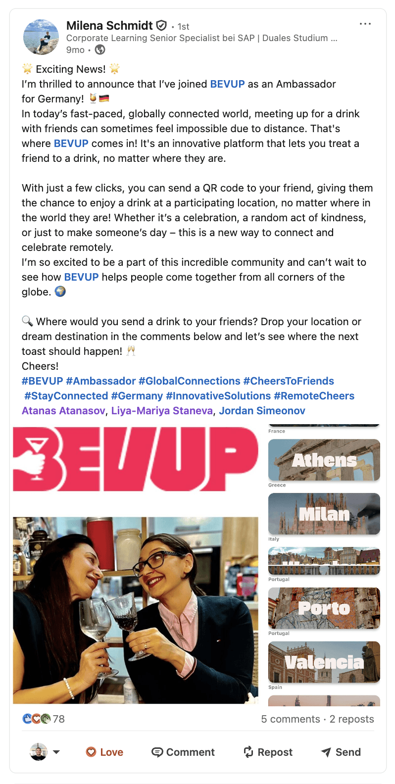 Reach out and let us know which place you’d like to see on BEVUP. We’ll try to establish a collaboration.